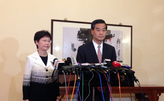 行政長官梁振英和政務司司長林鄭月娥,於2日晚上11時半於禮賓府見傳媒。