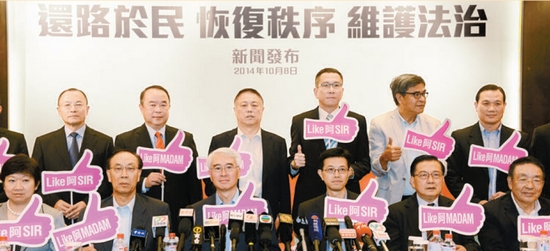 【香港商报讯】记者王珈莉报道:违法「占中」行动今踏入第12日,社会上民怨沸腾。「保普选反占中大联盟」认为,「占中」行动已失控,民生纷乱,要求示威者还路於民、恢复秩序及维护法治。大联盟更呼吁「占中三子」、「学联」及「学民思潮」停止呼吁市民上街,并珍惜与政府对话的机会。大联盟又呼吁市民向警方及政府保安人员致敬,「畀个Like阿Sir/Madam」。发言人周融强调,香港是好地方,不能让一些人为了自己理想,将香港变成地狱。