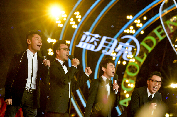 撒贝宁、汪涵、何炅、华少(从左到右)在开幕式现场献唱