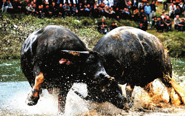 在貴州雷山苗族人心中,一年最大的期待就是看一場精彩刺激的斗牛比賽,只要斗牛賽事一出,百分之八九十的當地苗族同胞會放下手中的農活,看斗牛去了。苗族人愛牛,更愛看斗牛,其原因,他們都懂:看斗牛,就是看牛王爭霸,看力量之拼,看智慧之拼,看戰術之拼,看精神之拼,看民族精神氣之拼。勝者,一家之榮,一村之榮!敗者,一家之敗,全村之敗!