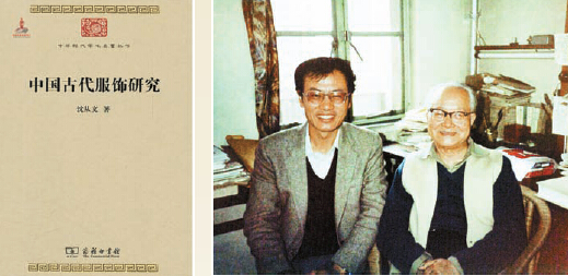 左图:沈从文传世之作《中国古代服饰研究》,由香港商务印书馆出版;右图:沈从文与陈万雄博士在上世纪八十年代的合影