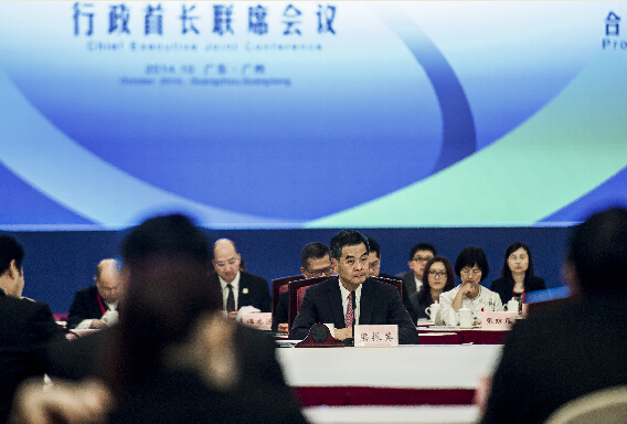 中新社广州10月13日电 (程景伟 索有为)2014年泛珠三角区域合作行政首长联席会议13日在广州举行,泛珠合作各方行政首长或行政首长代表出席。会议由2014年行政首长联席会议执行主席、香港特区行政长官梁振英主持。