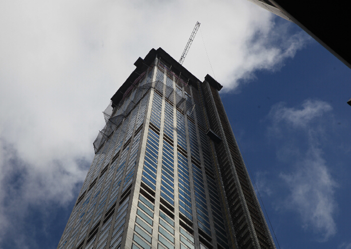 纽约诞生西半球最高住宅楼 单套公寓起价700万美元。 14日,纽约一座高达1396英尺(约425米)的摩天大楼封顶,这座纽约新地标性建筑不仅是纽约最高住宅建筑,这也是迄今为止西半球最高的住宅楼,该楼共96层,其住客可将纽约中央公园、哈德逊、东河及纽约五大行政区的美景尽收眼底。该摩天大楼预计2015年完工,有104套公寓可供出售,单套公寓起价700万美元,当前已经销售过半,其中售价高达9500万美元最贵顶层豪宅也已售出。