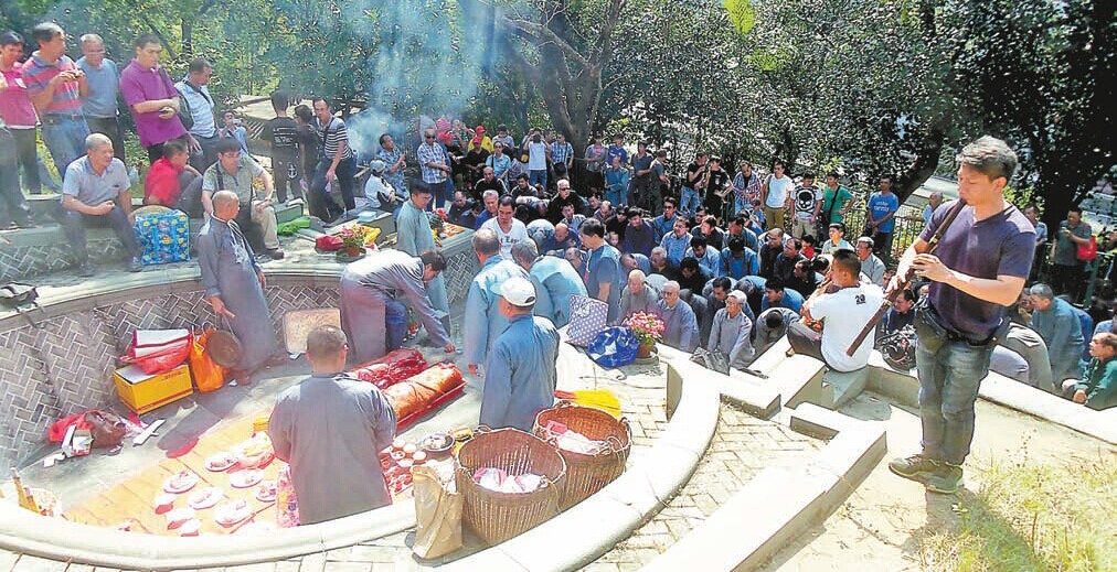 锦田邓族传人百余人肃立于“半月照潭”名穴拜祭