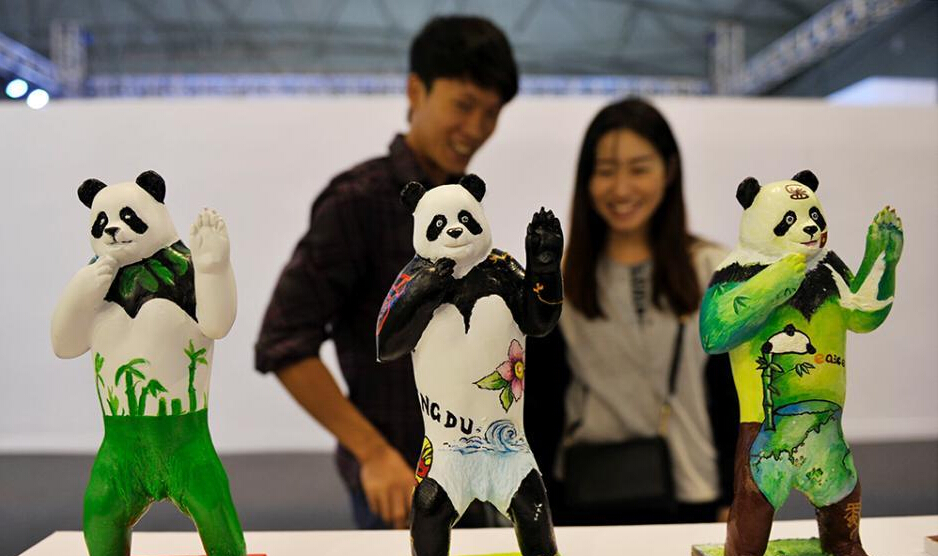 成都创意设计产业展览会全球彩绘大熊猫馆展出的彩绘大熊猫
