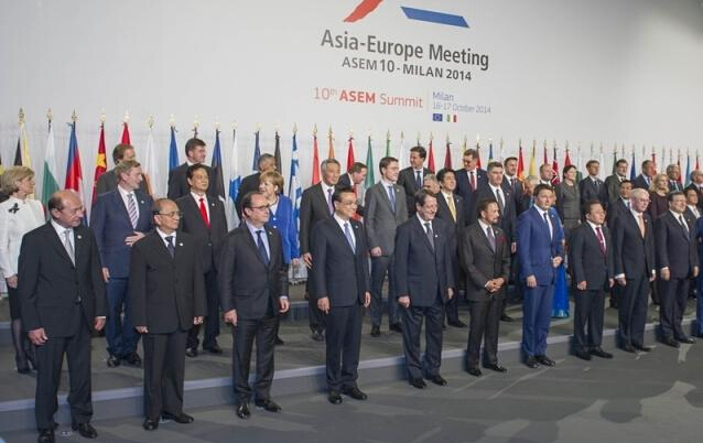 ——在米兰,亚欧首脑会议前的“全家福”中,克强总理不仅站在了第一排,而且是除了“东道主”伦齐、欧盟委员会主席巴罗佐和欧洲理事会主席范龙佩以外,唯一的政府首脑,其他都是元首级的哦,足见对中国的重视。