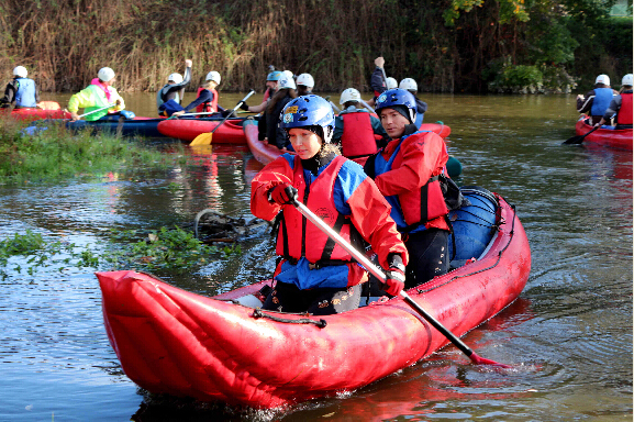 选手在双人划艇比赛中