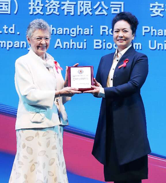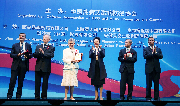 中国国家主席习近平夫人、世界卫生组织结核病和艾滋病防治亲善大使彭丽媛出席大会开幕式,并向为艾滋病防治作出特别贡献的外国科学家颁发纪念奖牌。