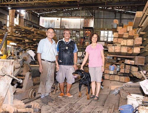 志記屬家族式經營的鎅木廠,至今有67年歷史,現時由老闆王鴻權(左)、其妹王美嬌(右)及其弟王鴻強(中)共同打理。記者 麥鈞傑攝