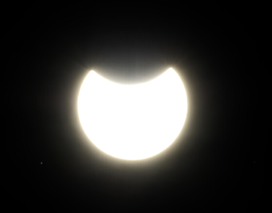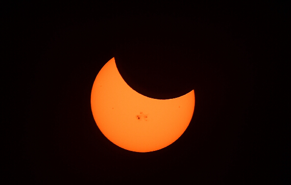10月23日,在美国圣迭戈,人们观看日偏食。