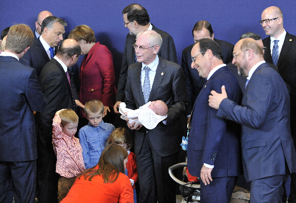 为期两天的2014年欧盟秋季峰会23日在布鲁塞尔开幕。欧盟成员国领导人将就气候变化和能源问题、欧洲经济问题以及备受关注的埃博拉疫情、乌克兰局势等国际问题展开讨论。最后一次主持欧盟峰会的范龙佩在拍摄领导人全家福时带着家里的几个孙辈出场,引起不小“骚动”。