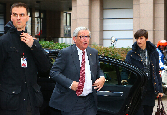 10月23日,在比利时首都布鲁塞尔,候任欧盟委员会主席容克抵达欧盟秋季峰会会场