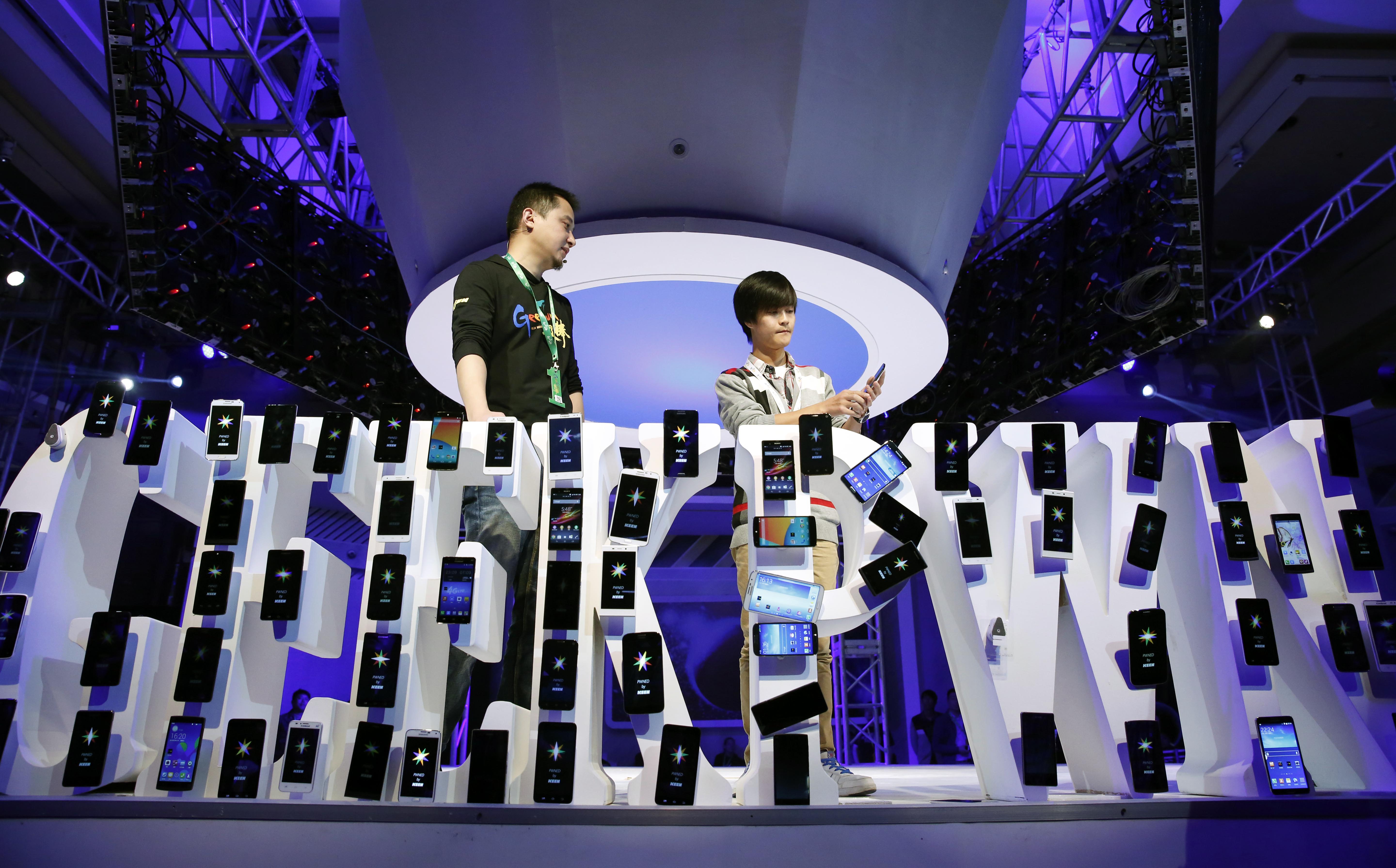 【社会】GeekPwn(极棒)安全极客嘉年华在北京举办。 10月24日,观众现场体验“黑掉”手机。当日,GeekPwn(极棒)安全极客嘉年华在北京举办。