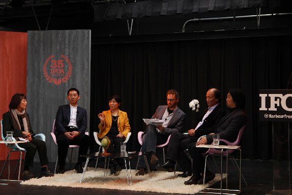 中國專場討論會由曾經旅居北京的加拿大作家、《紅色搖滾樂》作者喬納森·坎貝爾(Jonathan Campbell,右三)主持,中國西藏自治區作協主席扎西達娃(右一)、《人民文學》主編施戰軍(左二)、《上海文學》常務副主編金宇澄(右二)、加拿大滑鐵盧大學孔子學院院長李彥(左三)等共同主講