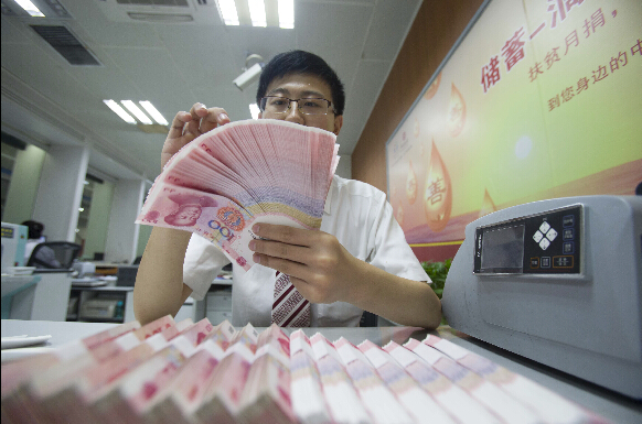 10月27日,根據中國銀監會披露的數據,截至9月末,中國銀行業金融機構境內資產總額達163.44萬億元(人民幣,下同),增速達13.6%;同期的負債總額達151.93萬億元,增速達13.2%;資產和負債總額的增速較8月份超過14.5%的增速均出現較大下滑。圖為銀行工作人員清點貨幣的資料圖。