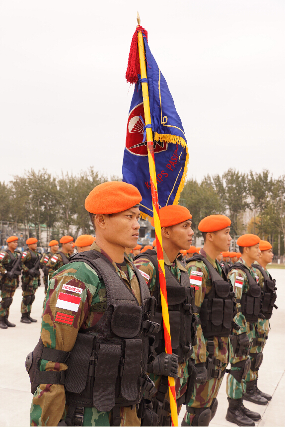 10月27日,經中央軍委批準,中國空軍空降兵與印度尼西亞空軍空降兵 “空降利刃-2014”聯合反恐訓練,在中國境內開始舉行。這是繼2013年中印尼空降兵在印尼境內首次成功舉行聯合訓練后,中國軍方與印尼特種部隊在戰術層面開展的又一次務實交流活動。圖為中印尼空降兵聯合反恐訓練開訓儀式。