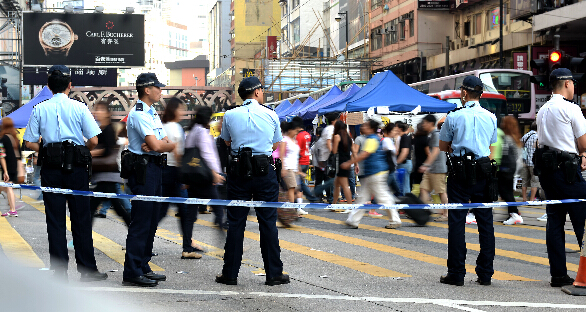 28日,警方在香港铜锣湾商业区维持秩序。 新华社