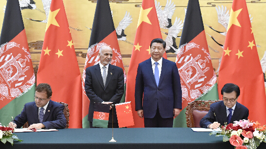 习近平同阿富汗总统加尼见证两国政府经济技术合作协定等文件的签署。中新社