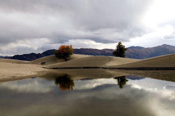位于拉薩南部的貢嘎縣境內有一處寧靜美麗的金黃色灘涂濕地,這里雪山環繞,白云漂浮在蔚藍的天空上,樹影倒映在清澈靜怡的湖水中。游客徜徉在細軟的金色沙灘上,盡享回歸自然的和諧與寧靜。