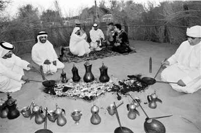 10月25日,在阿聯酋艾因市舉辦的首屆國家級傳統手工藝節上,當地牧民用傳統阿拉伯咖啡招待客人