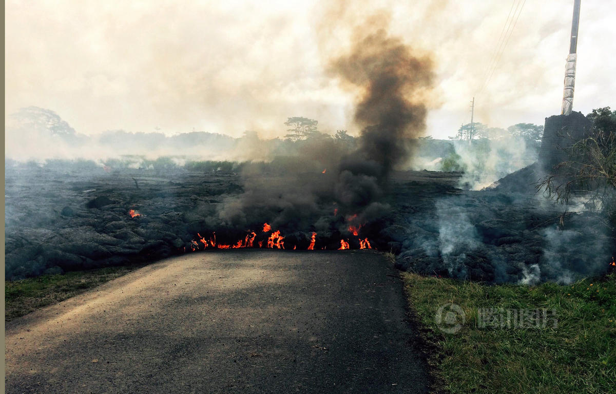 坐落在夏威夷大島的基拉韋厄火山從1983年就開始不時噴發。最近該火山噴出的岩漿是從一個新的火山口噴出的,岩漿緩慢流動,溫度高達1000攝氏度。岩漿所到之處無不化為灰燼,成為焦土。