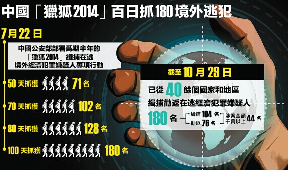 專項行動步入全面攻堅階段,中國警方將進一步加強國際警務合作,全面提速「獵狐2014」專項行動。