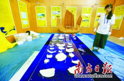 海博會展館展出的從南海1號打撈出來的瓷片。 南方日報記者 胡國球 攝