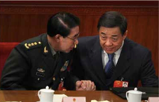 圖:2012年3月,當時同為十七屆中央政治局委員的薄熙來和徐才厚總是在主席臺緊鄰落座