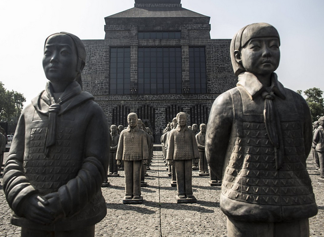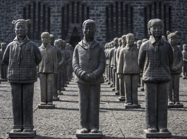 當地時間10月30日,墨西哥墨西哥城,法國視覺藝術家Prune Nourry打造的108名真人大小的“女兵馬俑”,這些女兵馬俑是以中國兵馬俑為靈感創作的。根據媒體報道,創作這些問題是希望喚起社會各界關注重男輕女的問題。