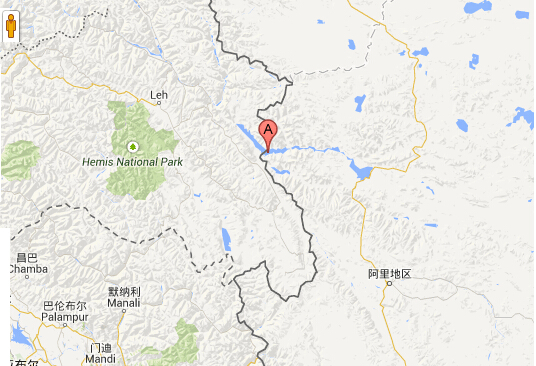 班公湖位置,中國控制湖東部約三分之二水域,印度控制西部約三分之一
