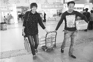 雖然昨日下午參展的糧油精品才開始向市民銷售,但上午就已經有許多前來觀展的市民迫不及待地向參展企業咨詢,早早地做好準備。當天下午,記者在現場看到,不少市民都自帶了小購物車前來采購。家住撫生路的王女士和丈夫在展館里轉了一圈,就買了兩袋大米、兩盒米粉、三桶葵花籽油,手上大包小包的她只好請參展企業幫忙,用推車送到停車場。買的大件物品運上了車,王女士又開始選購葡萄酒,“這里展覽的東西都是各個省的名牌,吃著放心,還有很多都是超市里買不到的,價格也不貴。如果不是怕吃不了,我肯定每個牌子大米都買一袋。”