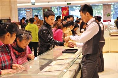 昨日,市民在菜百購買黃金產品。新京報記者 浦峰 攝