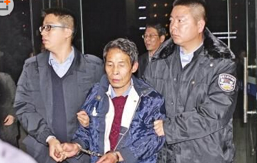 嫌犯張樣喜被緝捕人員押往弋陽縣公安局