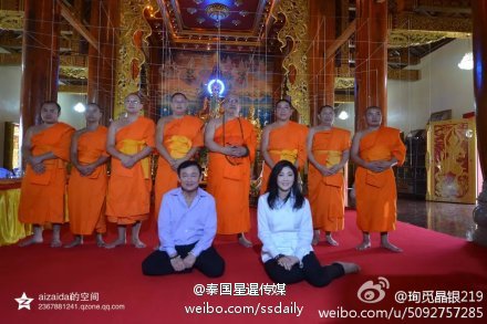 11月1日,英拉一行到雲南,英拉和他信在雲南西雙版納總佛寺拜佛。