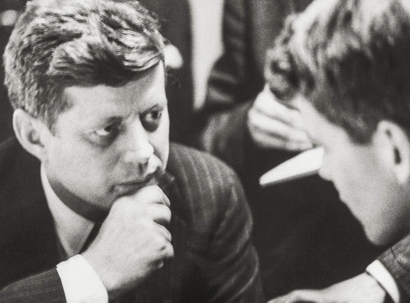 1960年4月,約翰·肯尼迪和他最信任的兄長及助手鮑比·肯尼迪在一起