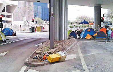 【香港商報訊】記者周偉立報道:違法「占中」今日踏入第40日,占領區每日仍有罪案發生。警方昨早接報,發現紅棉路及夏愨道交界對開一個安全島燈箱,底座接駁一個約30米長的電線拖板。警方初步調查后,把案件列作企圖竊取電力,由中區刑事調查隊跟進,暫未有人被捕。