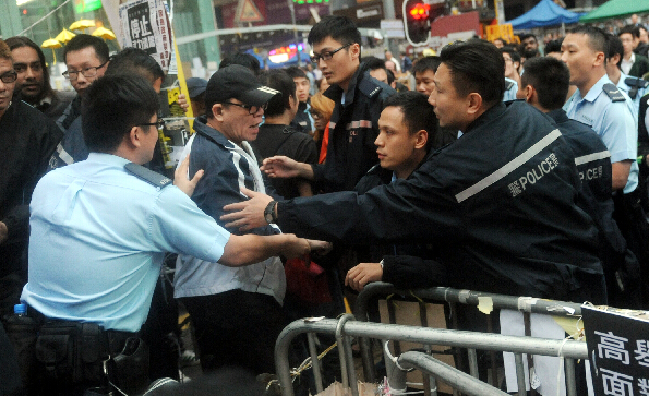11月4日,在旺角占领区有市民口角,多名警员劝喻冷静。中通社