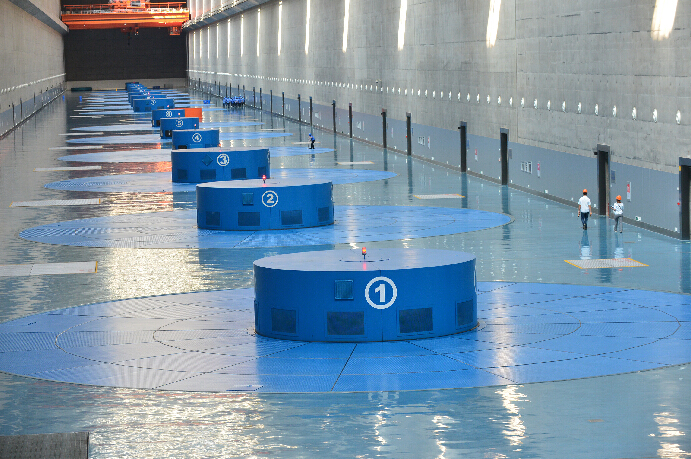 三峽電站是目前世界上裝機容量最大的水電站,機組尺寸和容量大,水頭變幅寬,設計和制造難度均居世界之最。電站共裝有32臺70萬千瓦巨型機組,加上兩臺5萬千瓦電源機組,總裝機容量為2250萬千瓦。