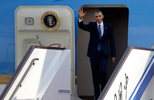 奧巴馬本次參加APEC會議依然乘坐的是總統專機——“空軍一號”。這架波音747-2G4B機長70.4米,機重超過400噸,價值13.5億美元,配備高度保密的防衛系統,可防禦核爆炸產生的電磁脈衝,被稱為全世界最安全的飛機,