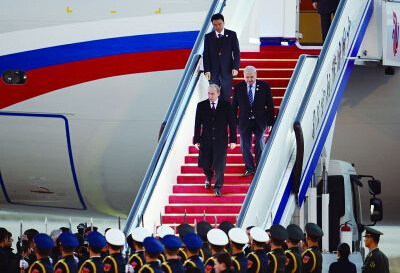 俄羅斯總統普京在9日清晨乘坐專機抵達北京。俄羅斯總統專機一架價值為2億美元的“伊爾-96”新型專機,機長55米,重230噸,可連續飛行9500公里,其外型像個茄子,所以得到一個“茄子”的雅號。