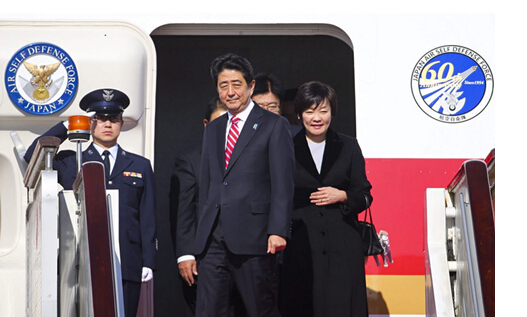 日本首相安倍晉三9日中午乘機抵達北京,出席亞太經合組織領導人非正式會議。