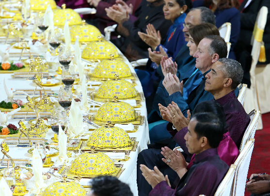 現在我提議,大家共同舉杯,為亞太地區繁榮進步,為亞太經合組織蓬勃發展,為這次領導人非正式會議圓滿成功,為各位嘉賓和家人的健康乾杯!乾杯!