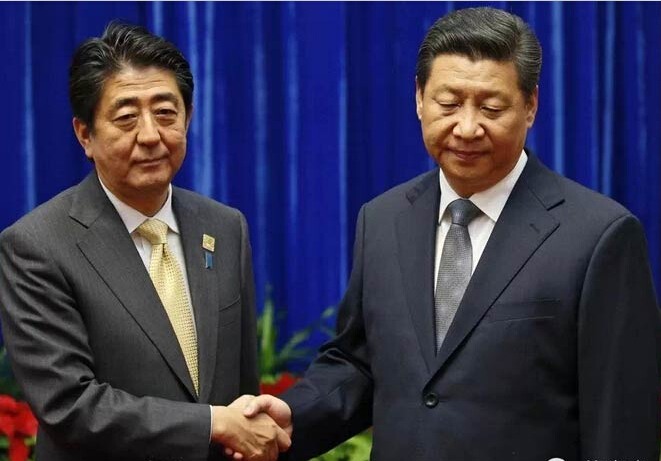 這不僅是兩人時隔一年多之後的再次會面(2013年9月,習總與安倍曾在俄羅斯聖彼德堡舉行的G20峰會上進行首次會面),更是2011年12月以來中國國家領導人第一次在中國與日本首相進行的正式會面。