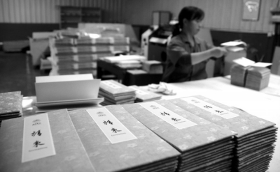 在印刷廠趕制車間,我們見到了正在印刷的請柬,為防止意外,每一本請柬都需要備份多份,並反復推敲每一個環節的製作,不斷修改。