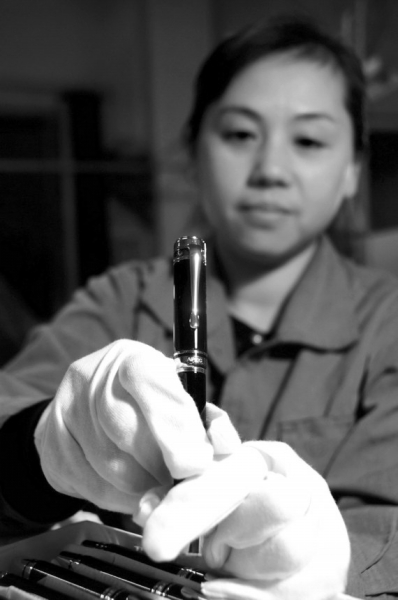上海英雄鋼筆廠有限公司總經理董文斌說,產品從10月1日開始加班加點製作,光筆尖就經歷了37道工序。“第五道傳統的榫卯結構將節能的LED光源安置在內。