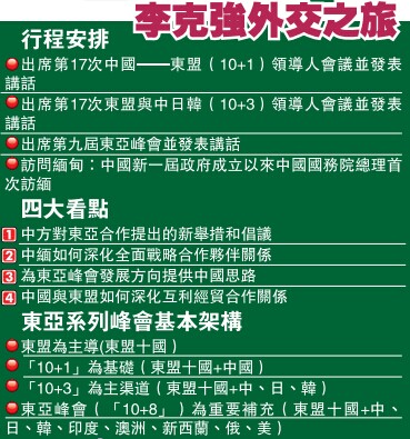 動身前往緬甸前一天,李克強在新加坡《聯合早報》上發表題為《攜手開創中國—東盟關係美好未來》的文章,對中國與東盟關係的現狀和前景予以全局性概括和展望。