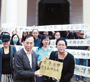 約30名家長昨午帶同寫有「愧對家長」、「教不賢,師之惰」、「不要撒野、勿再利用孩子」等字眼的標語及橫額,依次到沙田官立中學、香港中文大學及香港大學請願。