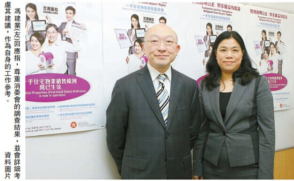 關於消委會建議修例以確保價單上所有單位必須同步發售及檢討「冷靜期」及「沒收金額」等,馮建業指出,一手新例在立法過程中,已充分考慮各持份者意見,經過立法會深思熟慮才獲通過,而消委會提出的調整「冷靜期」及「沒收金額」等建議,屬於重申其在立法過程中已持的舊觀點,各持份者對此都有不同看法。他強調,條例須在保障消費者權益及給予發展商做商業決定的空間中作平衡,修例與否應先了解各方共識及平衡各方需求。