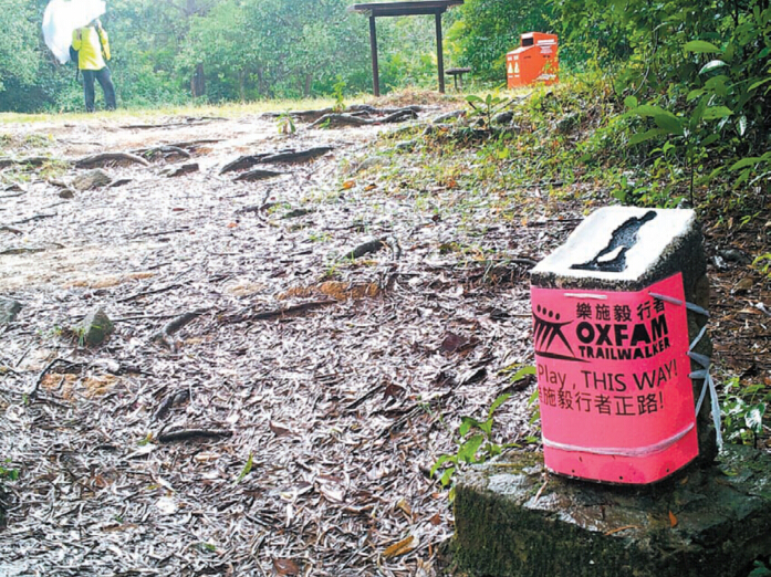 樂施會於茅坪掛號指引標語,毅行者比賽準備就緒