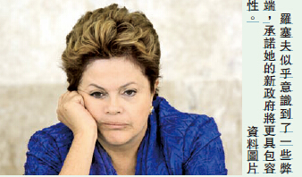 羅塞夫幾乎有著列寧主義式的信仰,也因此忽視了更具活力的制造業和服務業。她聽任葡萄牙殖民主義官僚傳統扼殺創新,這種縱容態度尤甚於她的兩位前任。近日,羅塞夫似乎意識到了一些弊端,承諾她的新政府將更具包容性。然而,為了扭轉巴西岌岌可危的經濟現狀、甚至解決巴西國家石油公司漸漸明朗的腐敗醜聞,她必須作出改變,否則巴西未來幾年的日子可不好過。